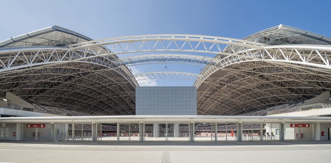 کل مجموعه «سنگاپور اسپورتس هاب» ۳۵۰ هزار مترمربع وسعت دارد و توسط معروفترین شرکت معماری تایوان DP Architects ساخته شده است. قطر بنای گنبدی قرارگرفته بر روی این ورزشگاه ۳۱۲ متر است که رقیب خود Texas Cowboys Stadium را با ۳۷ متر بیشتر شکست داده است.